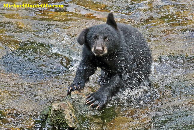 While most populations in the west of the American Black Bear’s range have black fur, in the east, many populations have lighter cinnamon or yellow-brown coats. In addition, some populations found along the Pacific coast have grey-blue fur, while in British Colombia, Canada, about 10% of the population have an entirely white coat.