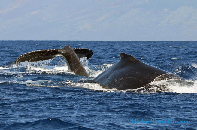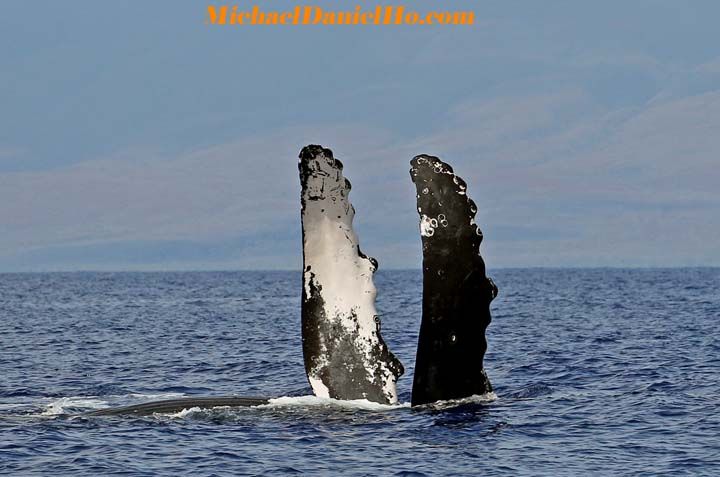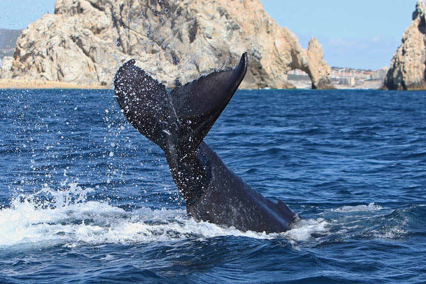 There are two blowholes on the back and the spout of water can appear very bushy. The spreading tail flukes have a distinct indentation in the middle; as the whale undertakes a deep dive it usually arches its back (hence the common name) so that the tail flukes are raised above the water and clearly visible. The pattern on the underside of the flukes is unique and can be used to photo-identify and track individuals.