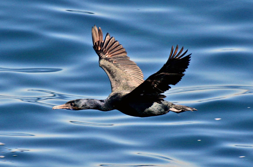Cormorants are coastal rather than oceanic birds, and some have colonised inland waters. All are fish-eaters, dining on small eels, fish, and even water snakes. They dive from the surface, though many species make a characteristic half-jump as they dive, presumably to give themselves a more streamlined entry into the water. Under water they propel themselves with their feet.