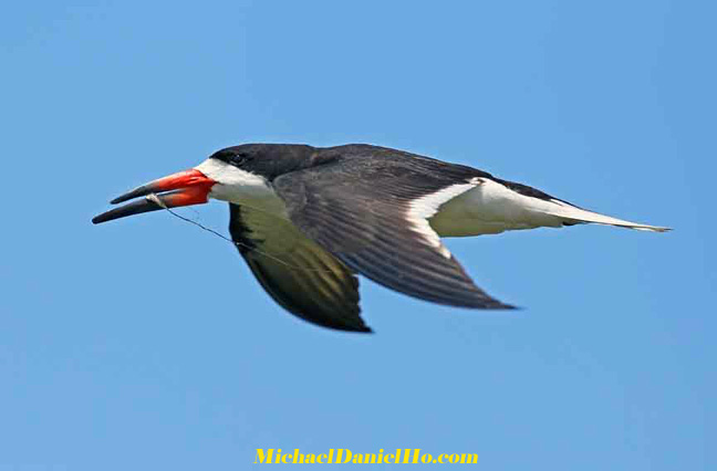 This remarkable adaptation allows them to fish in a unique way, flying low and fast over streams. Their lower mandible skims or slices over the water's surface ready to snap shut any small fish unable to dart clear. The Skimmers are sometimes included within the gull family Laridae but separated in other treatments which consider them as a sister group of the terns. The Black Skimmer has an additional adaptation and is the only species of bird known to have slit-shaped pupils. Their bills fall within their field of binocular vision and enable them to carefully position their bill and capture fish. They are agile in flight and gather in large flocks along rivers and coastal sand banks.